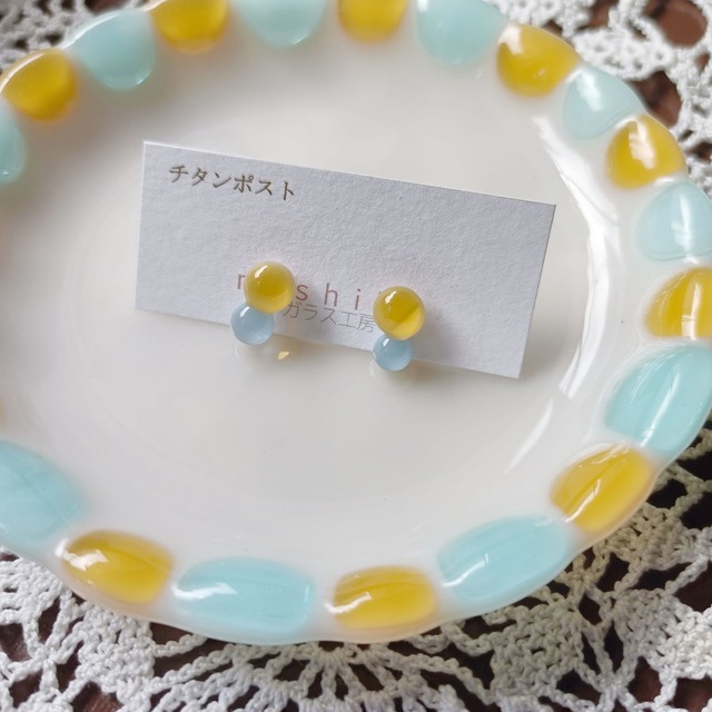 ガラスを溶かしたふた粒 ピアス