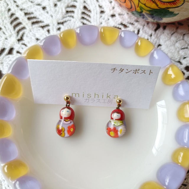 ベネチアングラスのマトリョーシカ ピアス