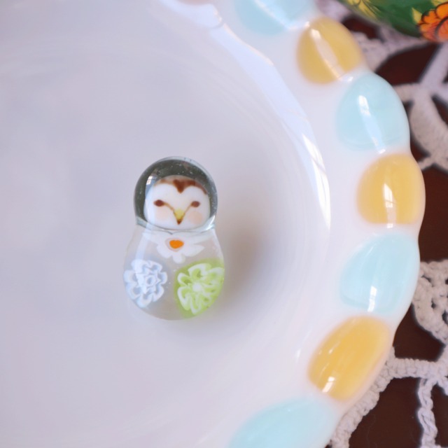 ベネチアングラスのフクリョーシカ ブローチ ふくろう