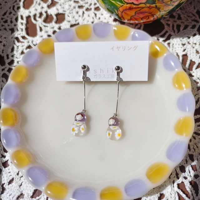 ベネチアングラスのマトリョーシカ イヤリング