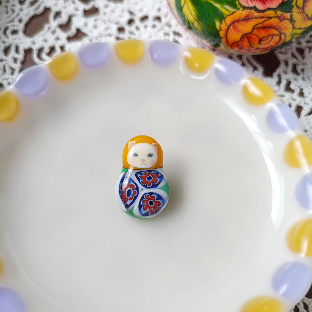 ベネチアングラスのネコリョーシカ ブローチ