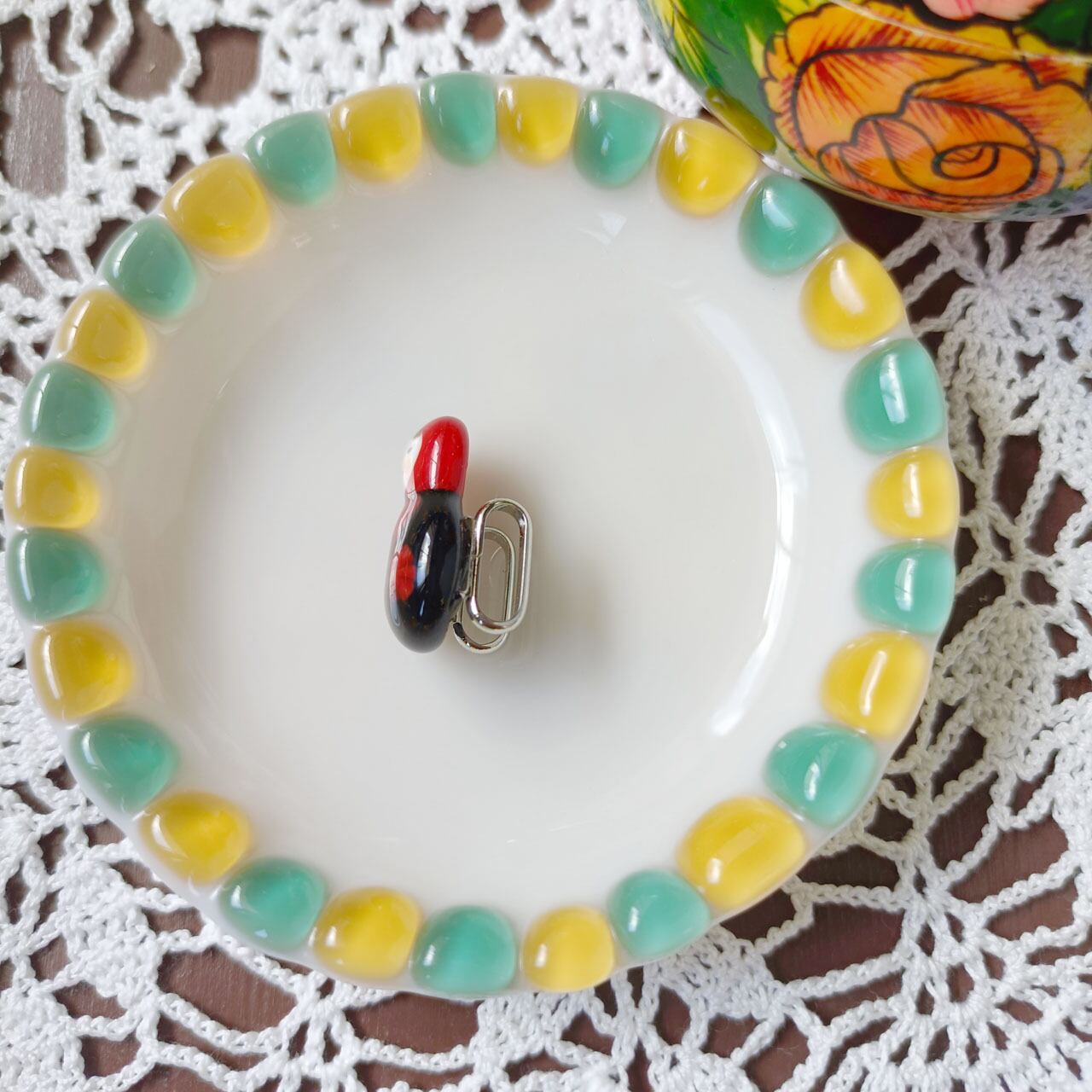 エマイユ絵付けと一晩窯入れを何回か繰り返し、完成まで一週間かかっているとは思えないゆる~いキャラに仕上がりました。