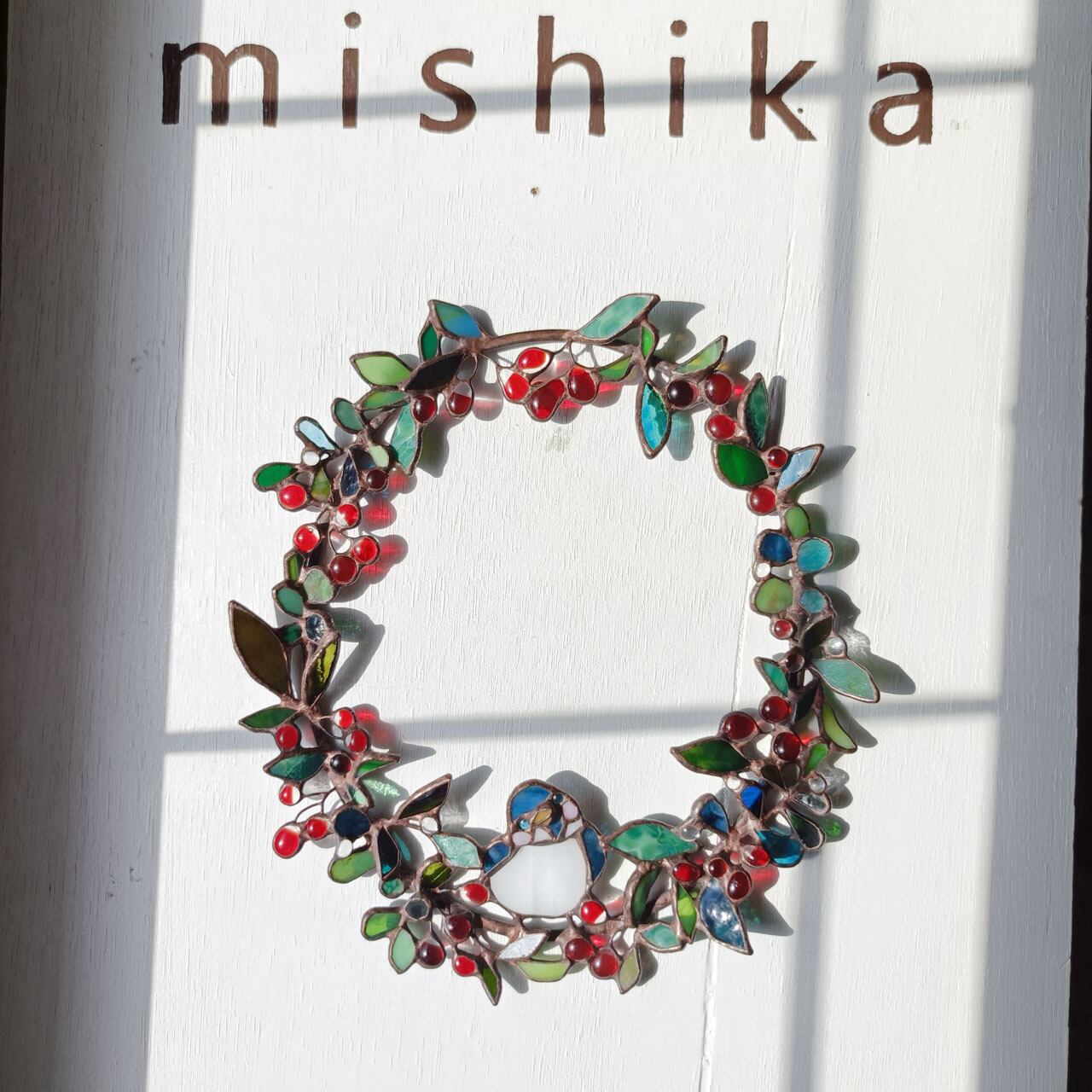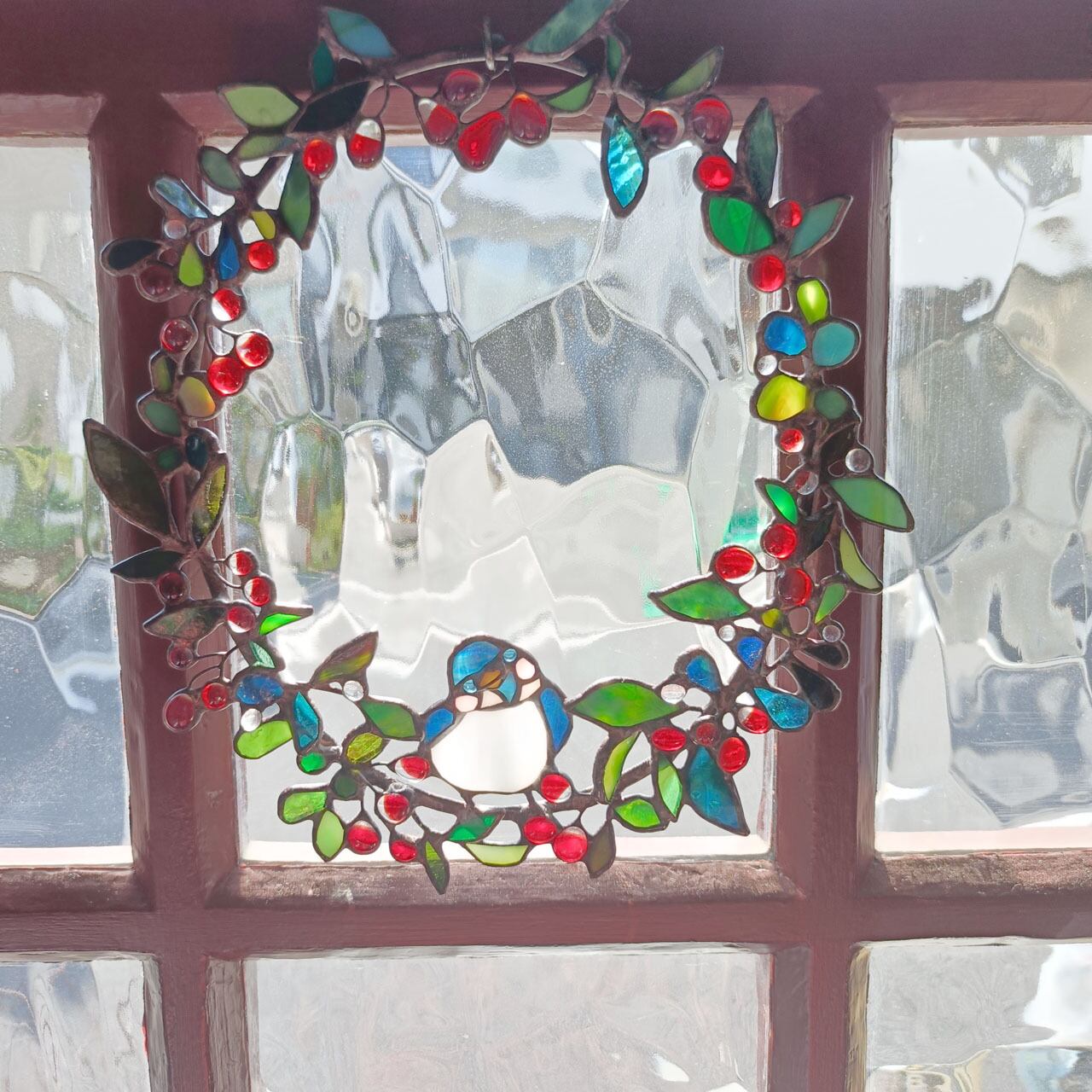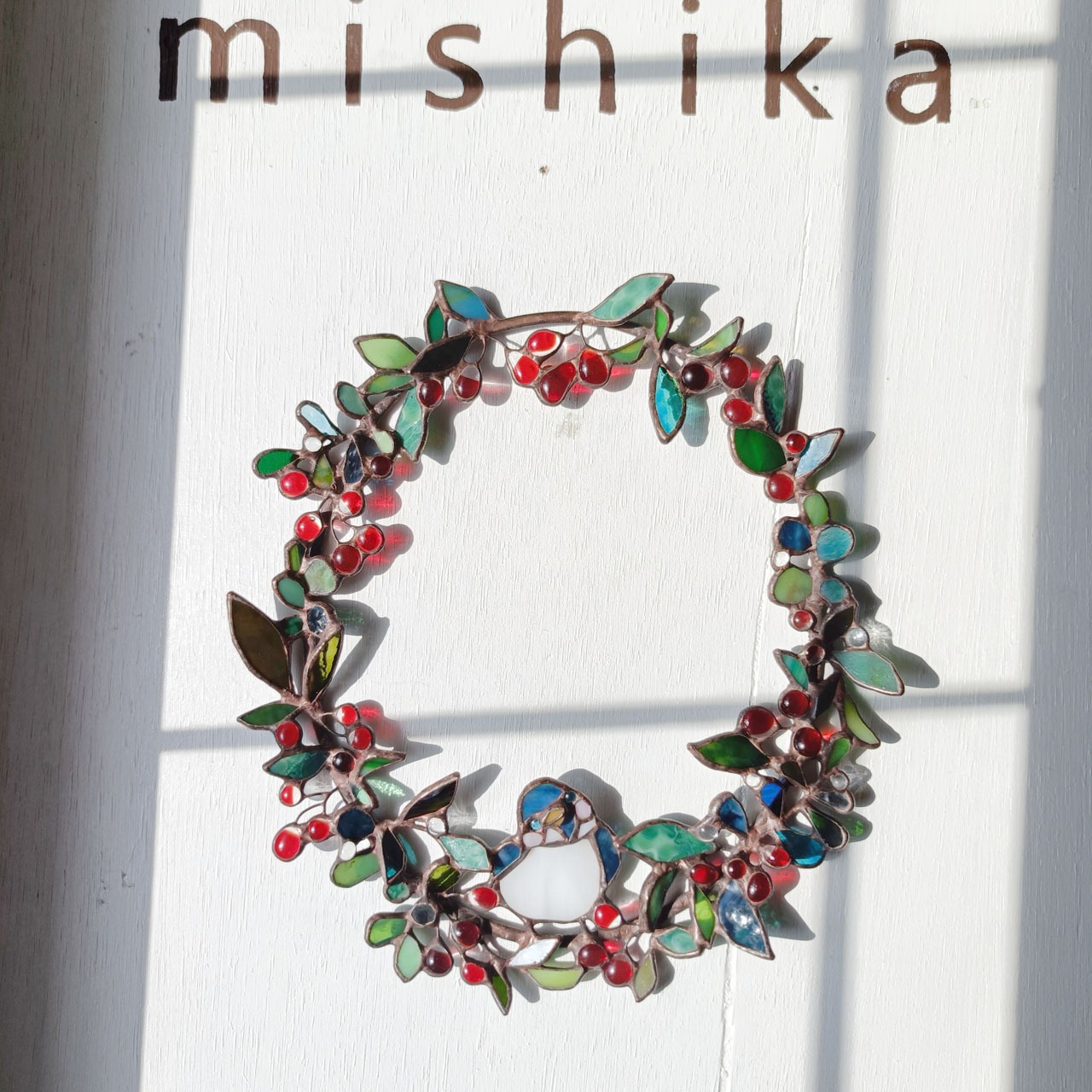 青い鳥のリース ステンドグラス 窓飾り 壁飾り 表札にも♪