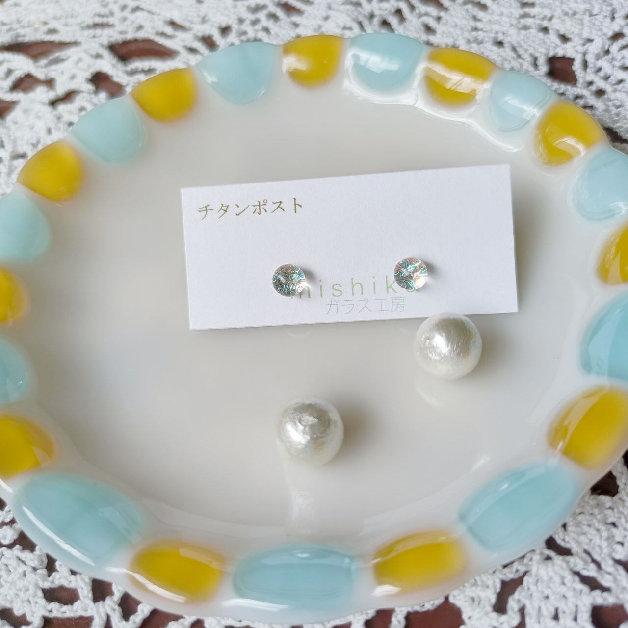 【素材】ベネチアングラス、チタンポスト、コットンパールキャッチ