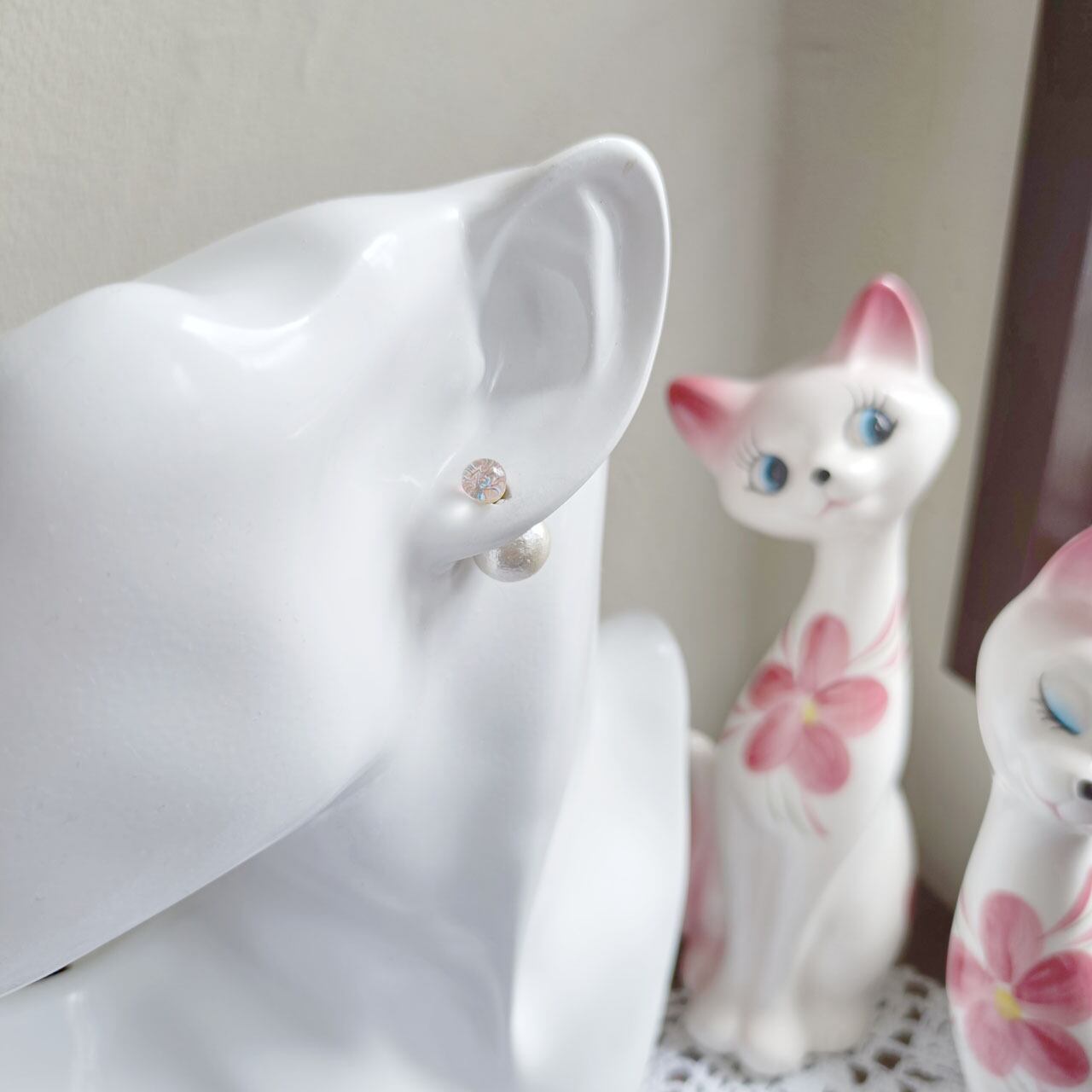 オーロラガラスのピアス コットンパールキャッチ