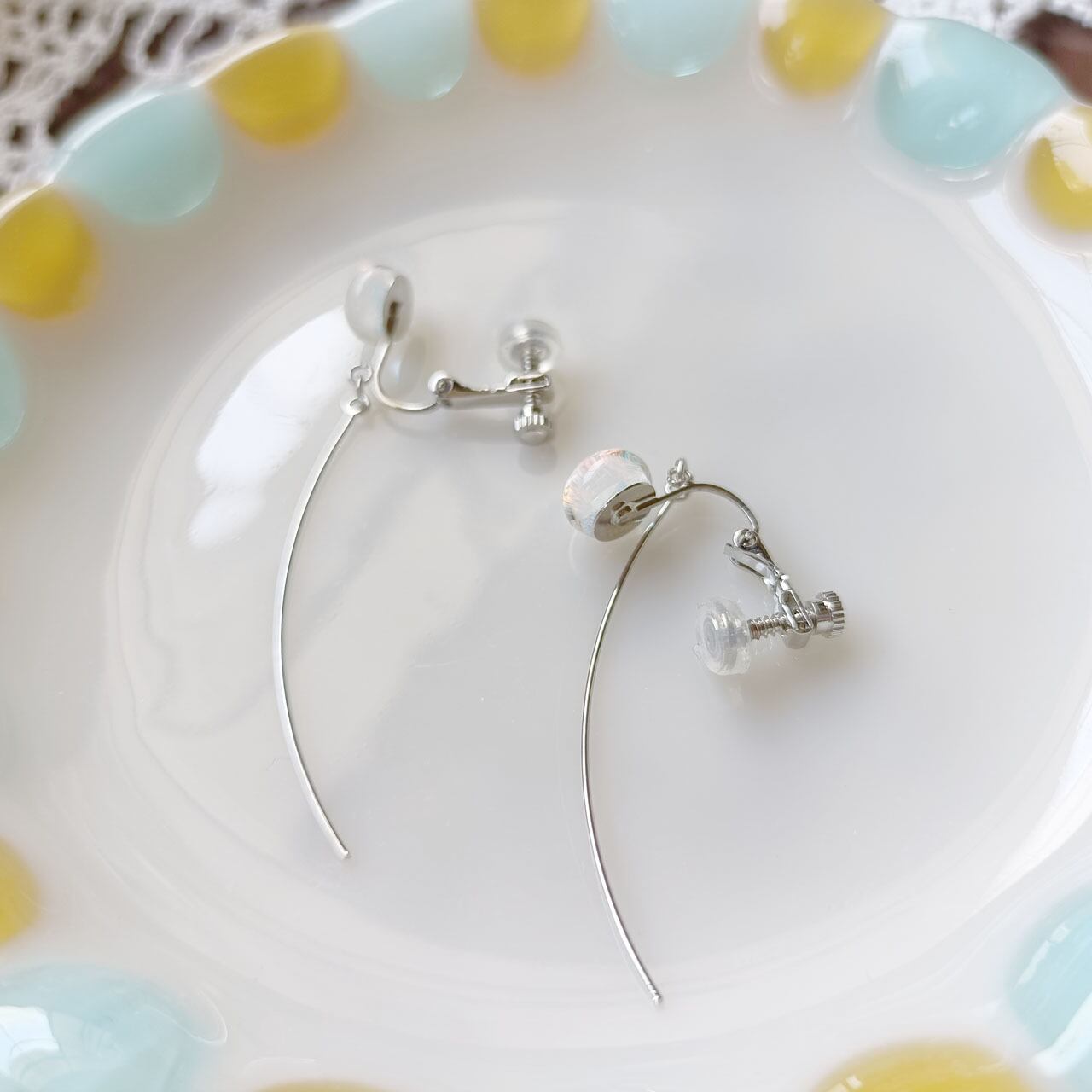 オーロラガラスのピアスです。