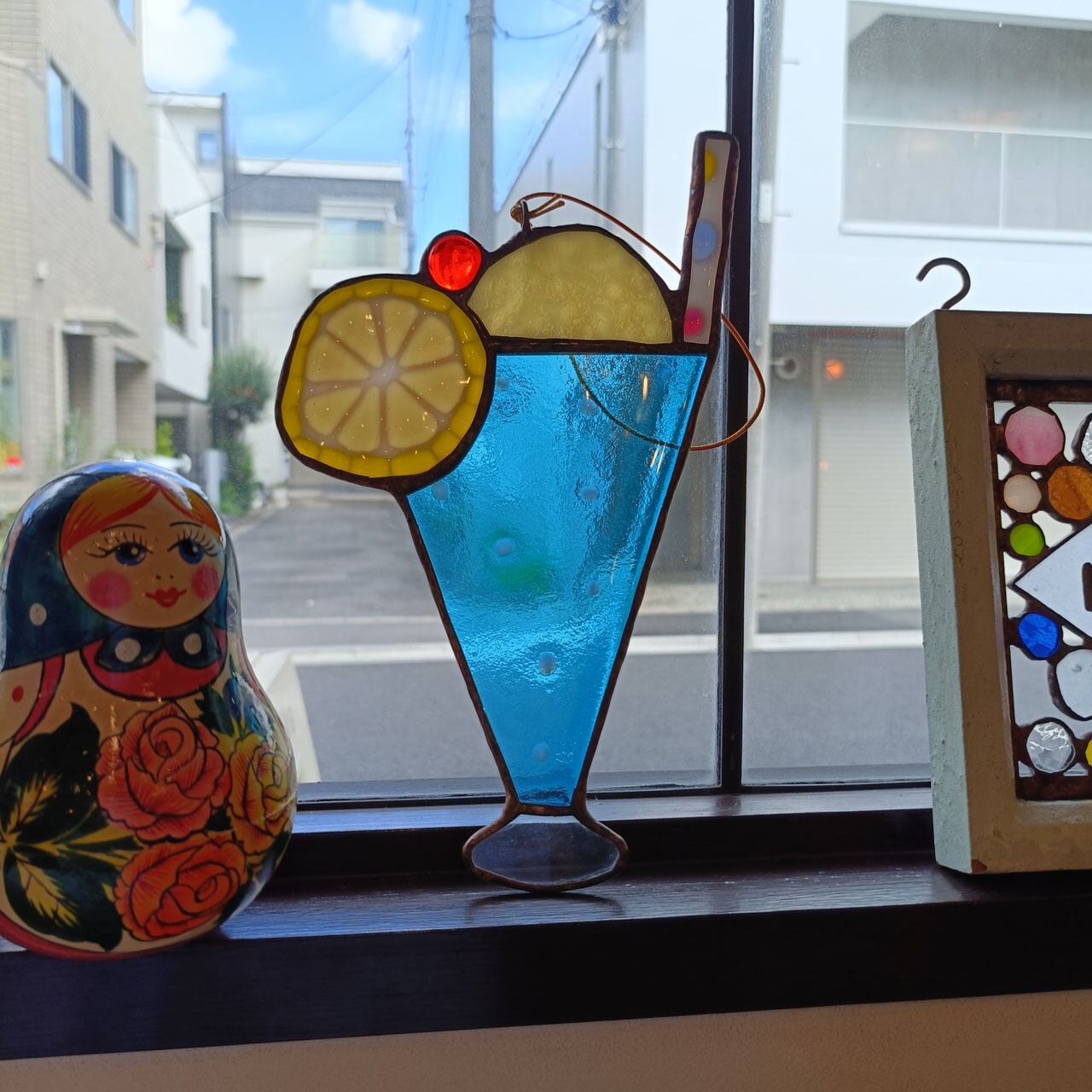 【OUTLET】ステンドグラス クリームソーダ オブジェ ガラス