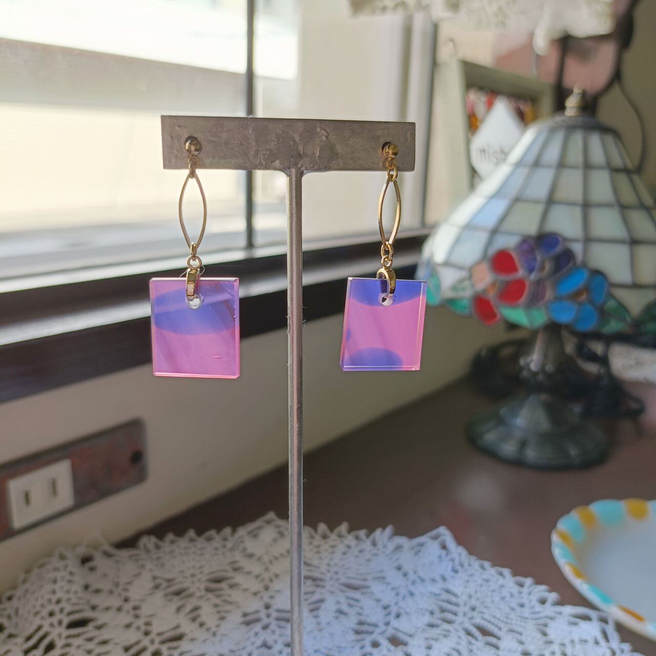 アンティークガラスのカケラをピアスにしました。