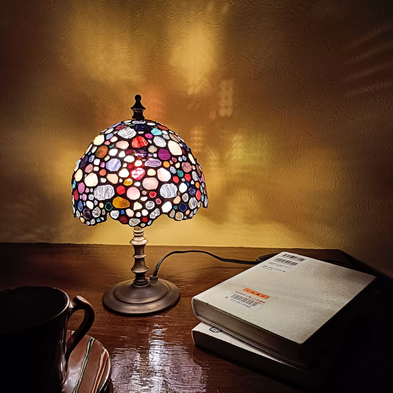 さざれ石のように様々なガラスをひとつひとつ削ってランプにしました。