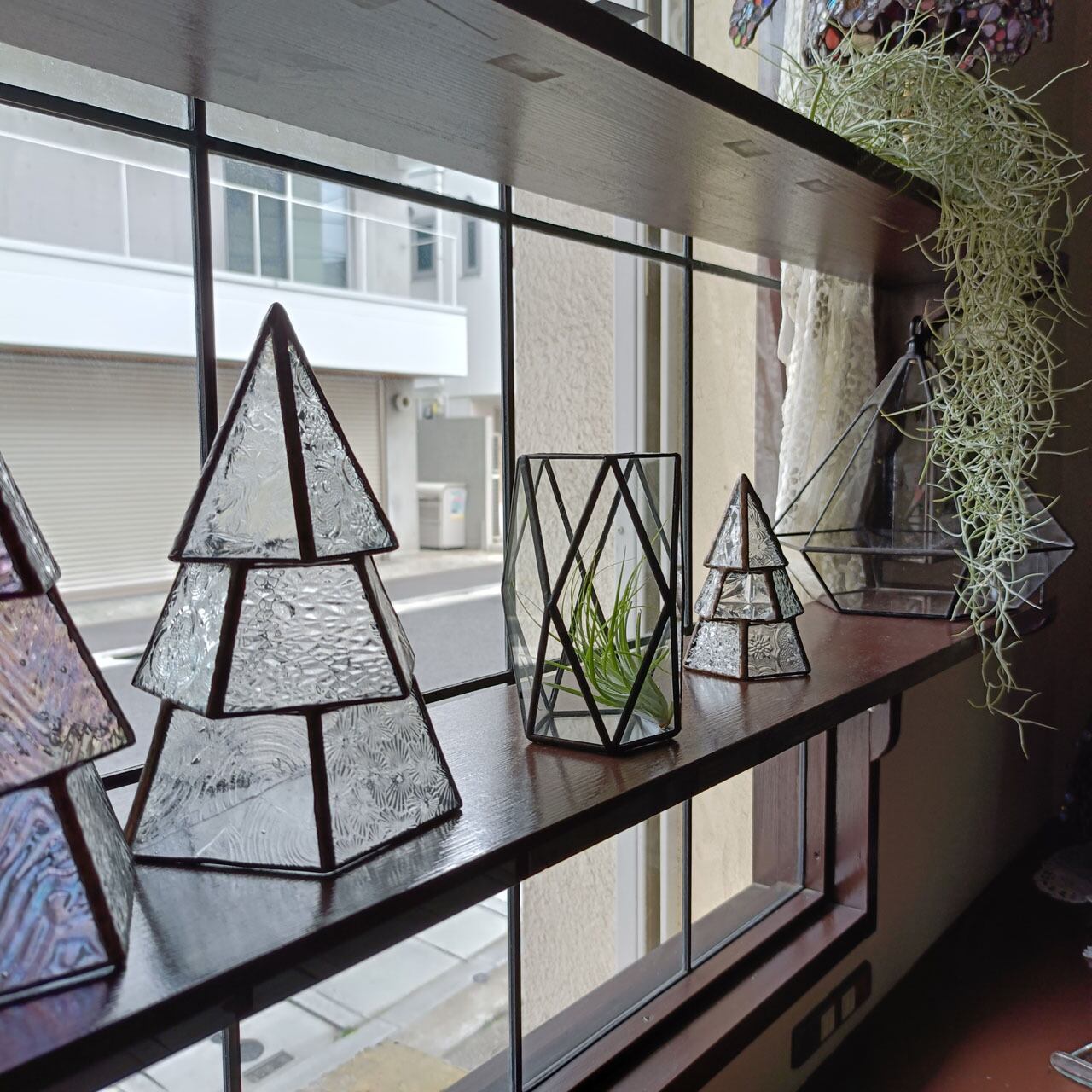 シンプルなステンドグラスのテラリウムです。