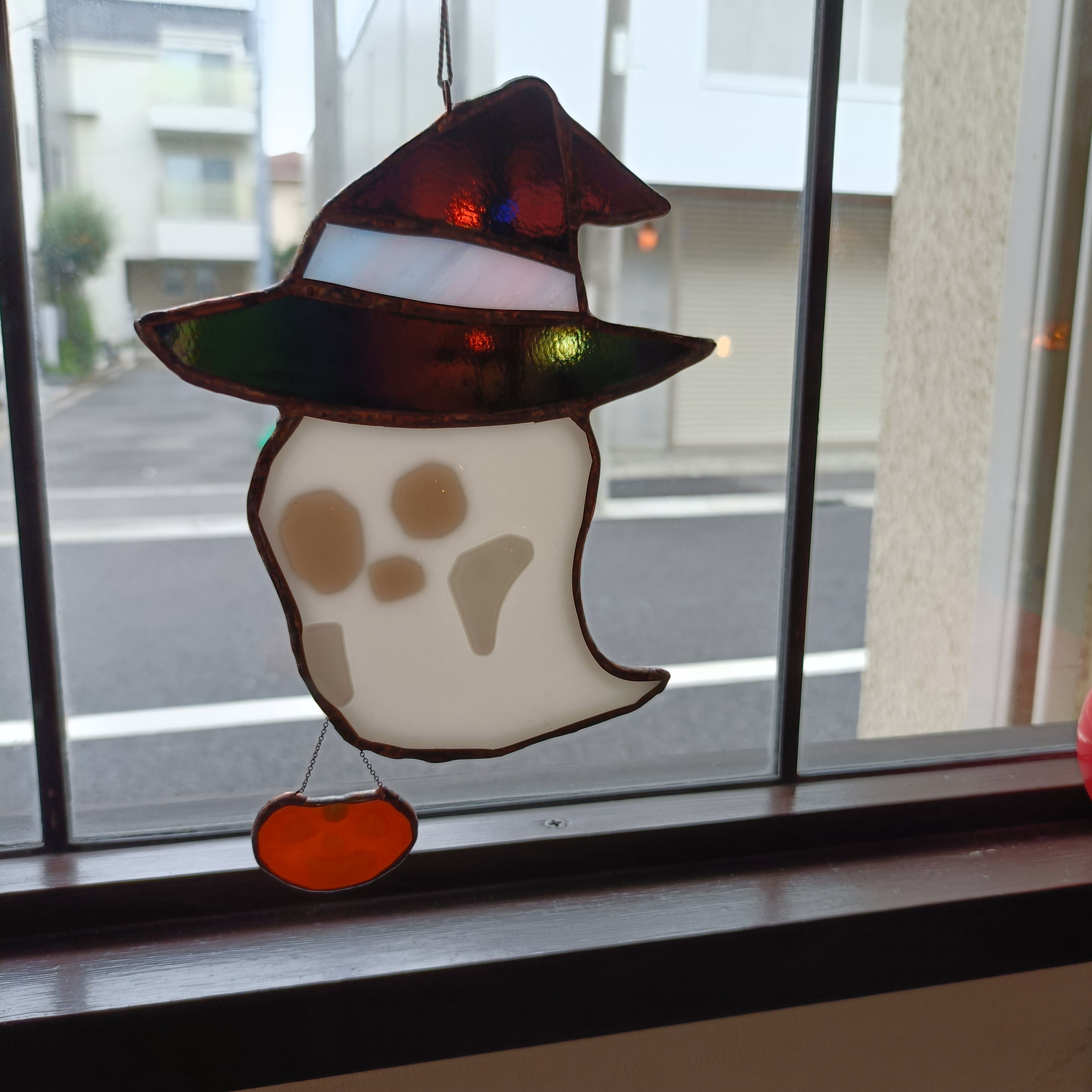 ハロウィンパーティーとやらに行くというので、帽子とかぼちゃのランタンを持たせました。