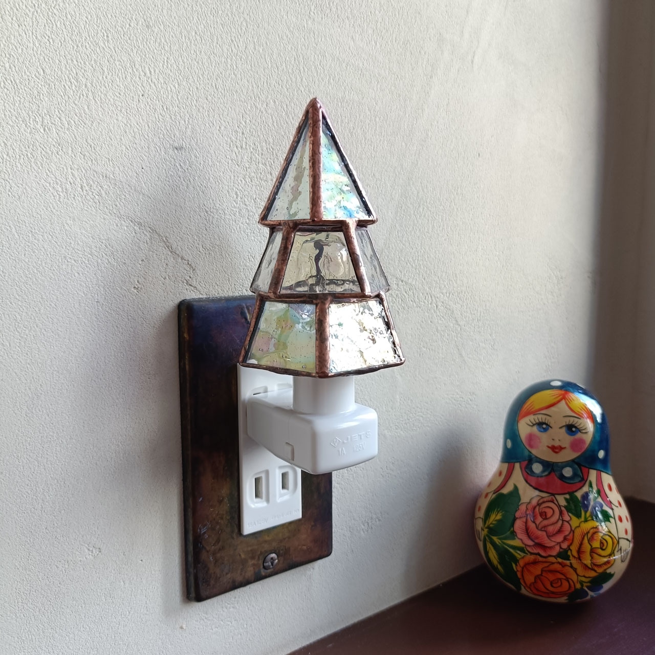 貝殻のような淡い虹色の光沢の透明ガラス。