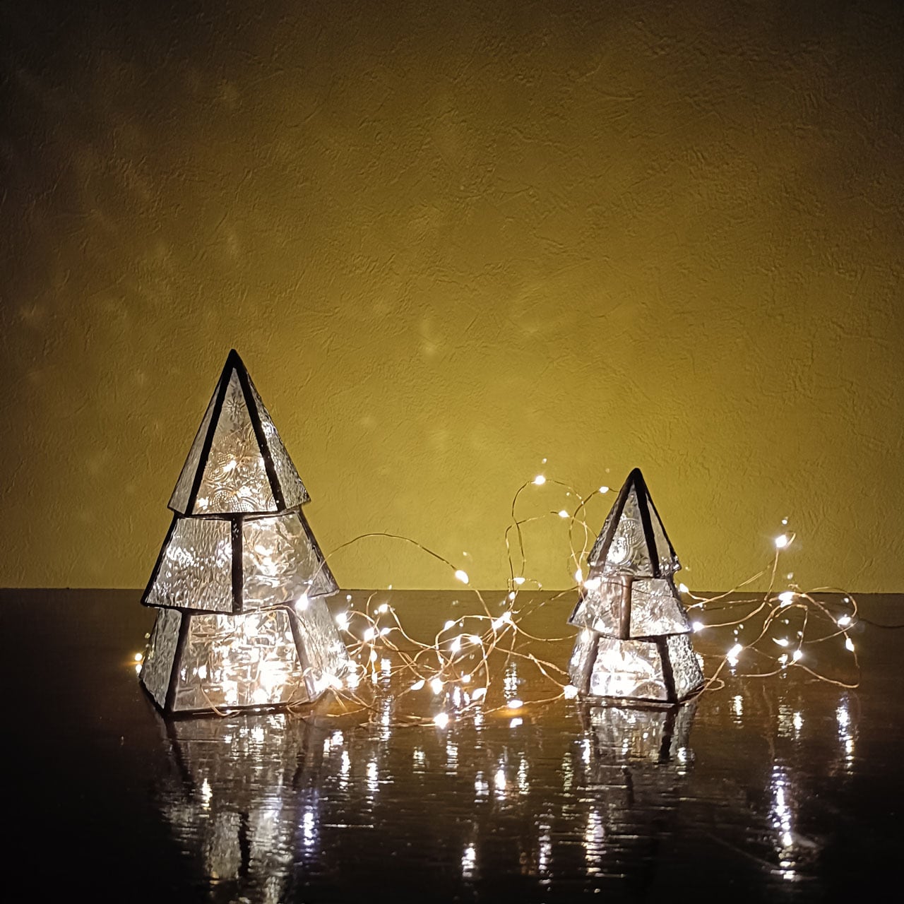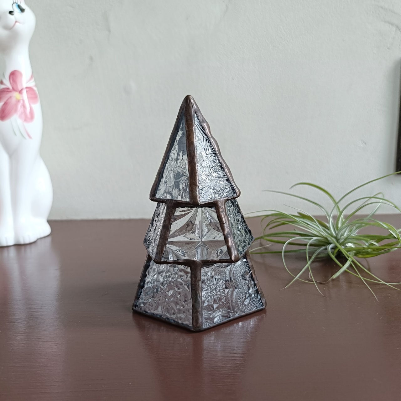 レトロな型ガラスをモザイクなツリーにしました。