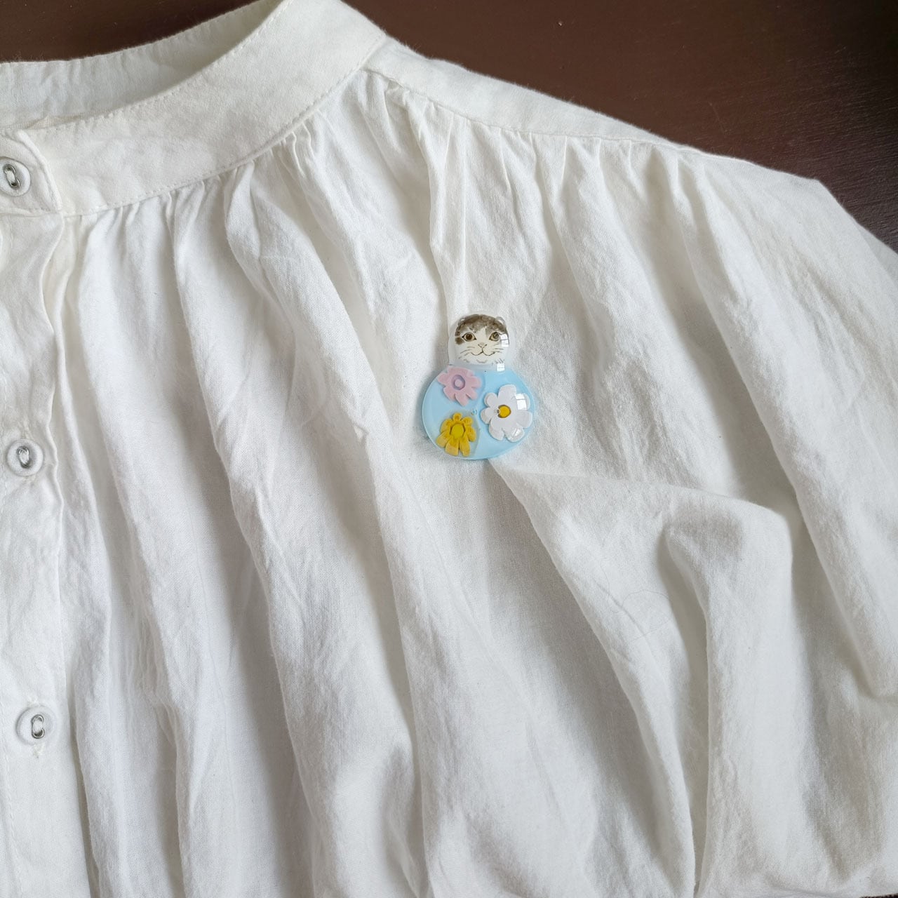 ベネチアングラス マトリョーシカ ねこ ブローチピン