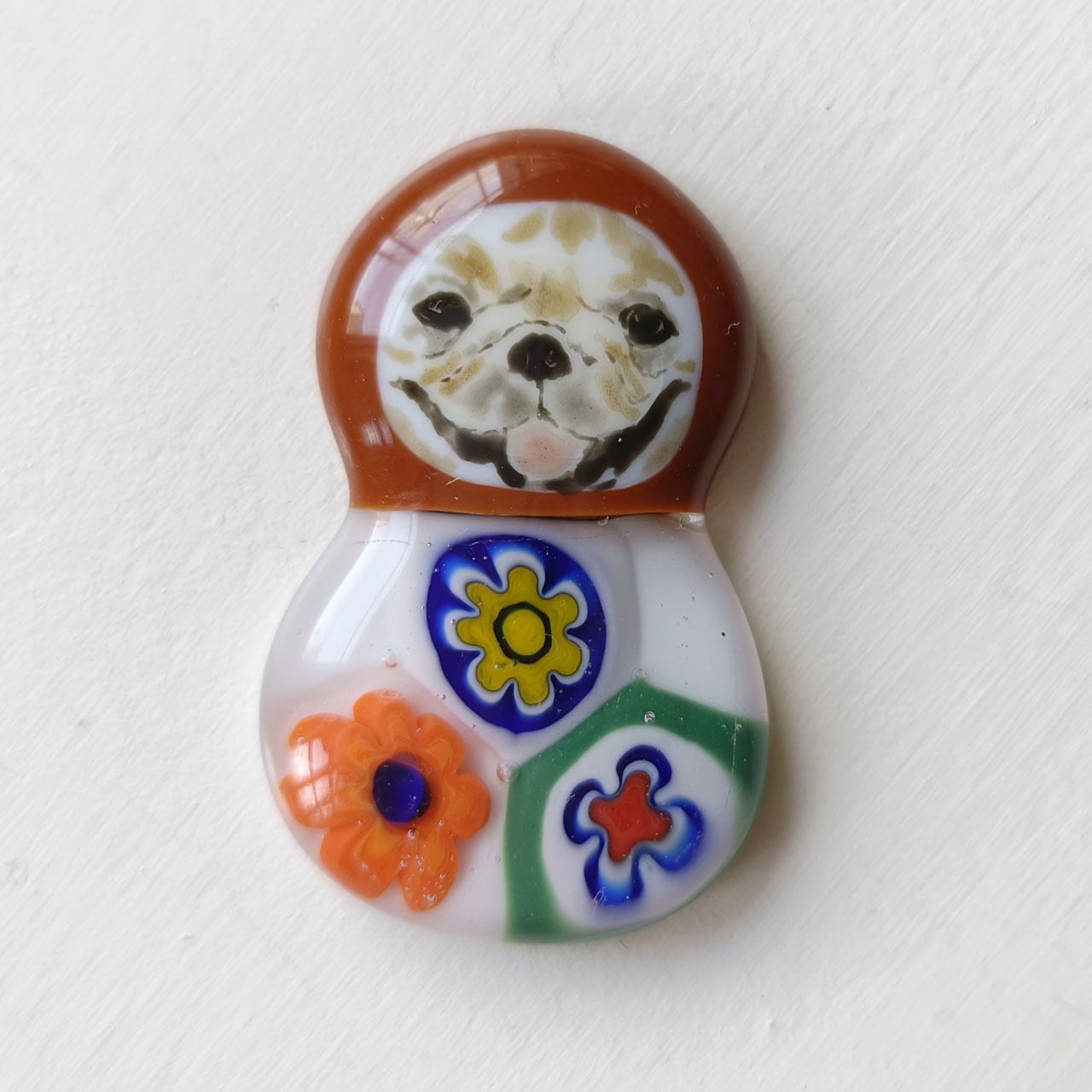 エマイユ絵付けの後、一晩窯入れを何回か繰り返し、完成まで一週間かかっているとは思えないゆる~いキャラに仕上がりました。