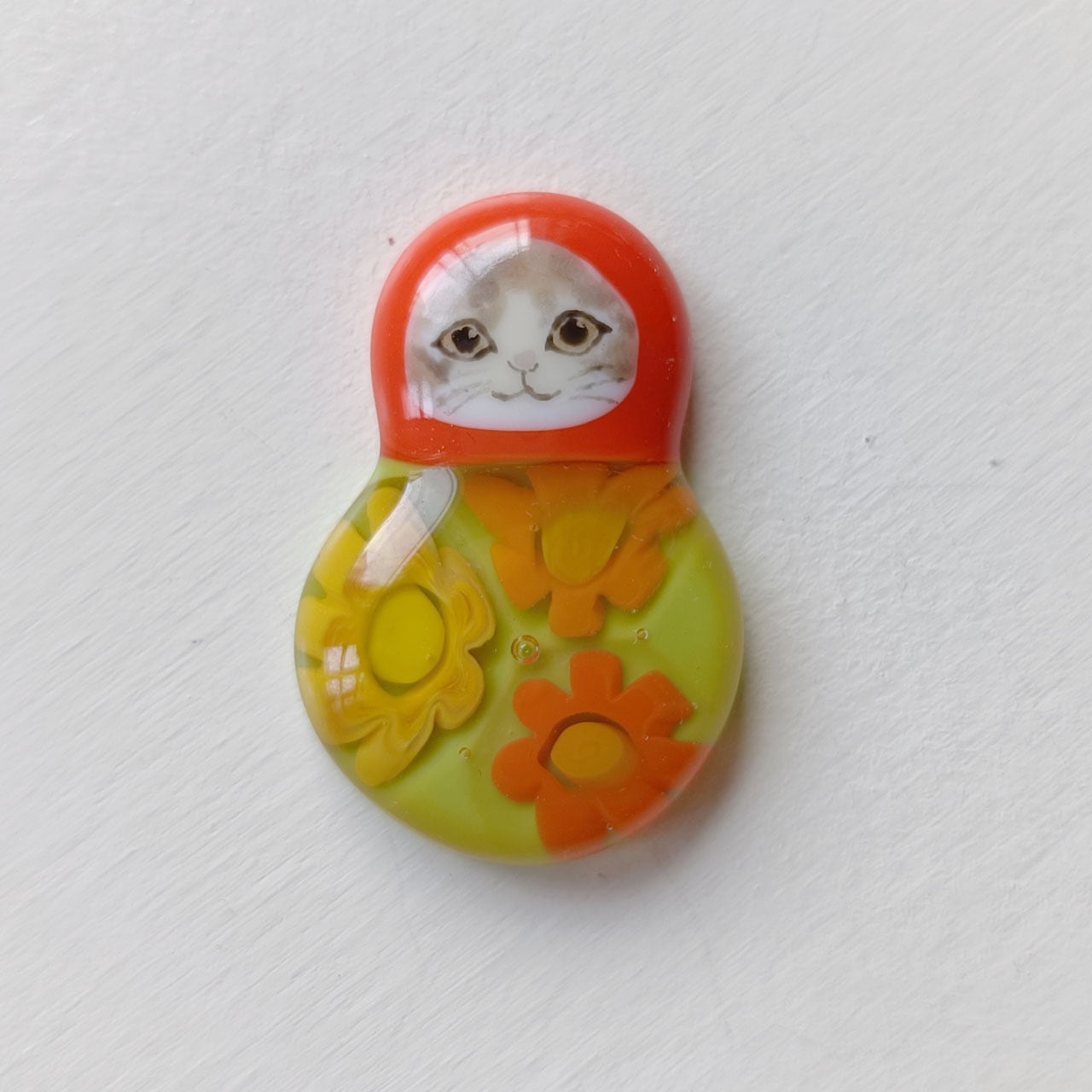伝統的なマトリョーシカの形を活かしつつ、ガラス特有の透明感と色合いが魅力です。