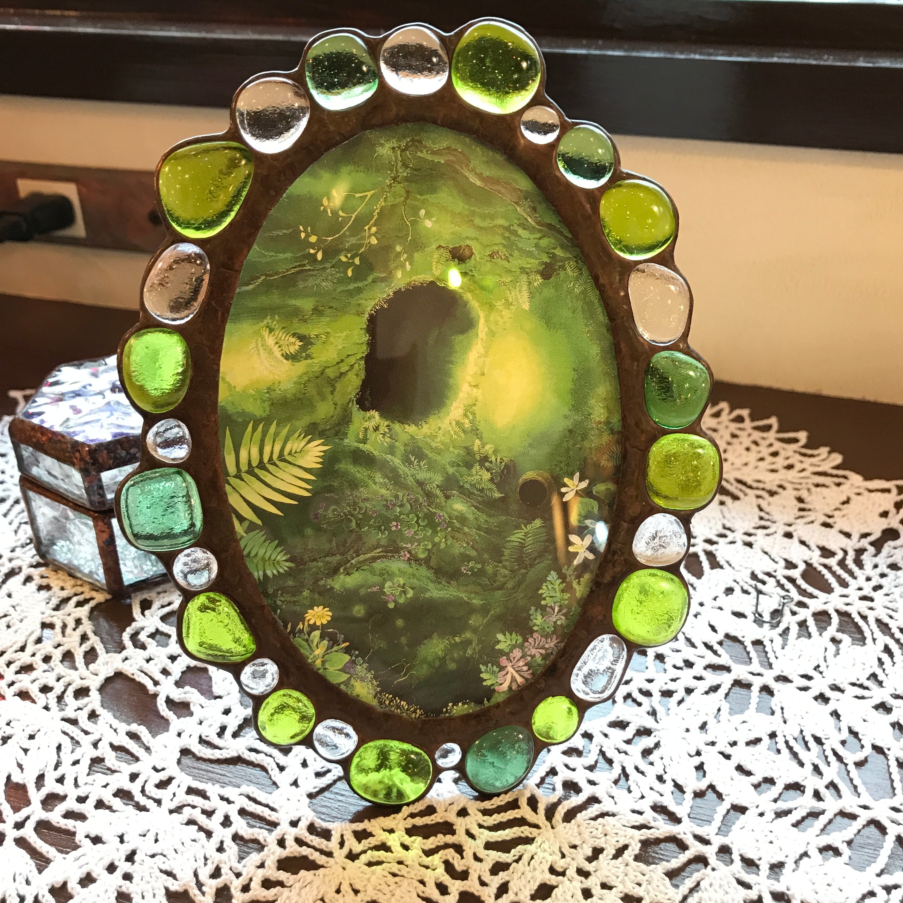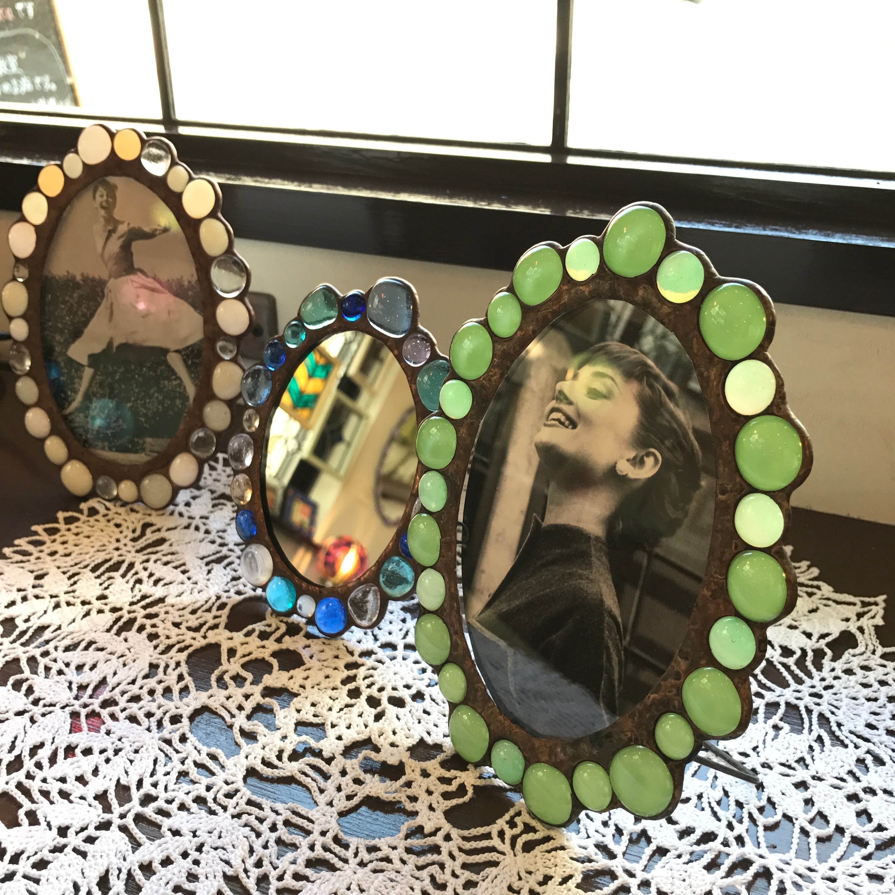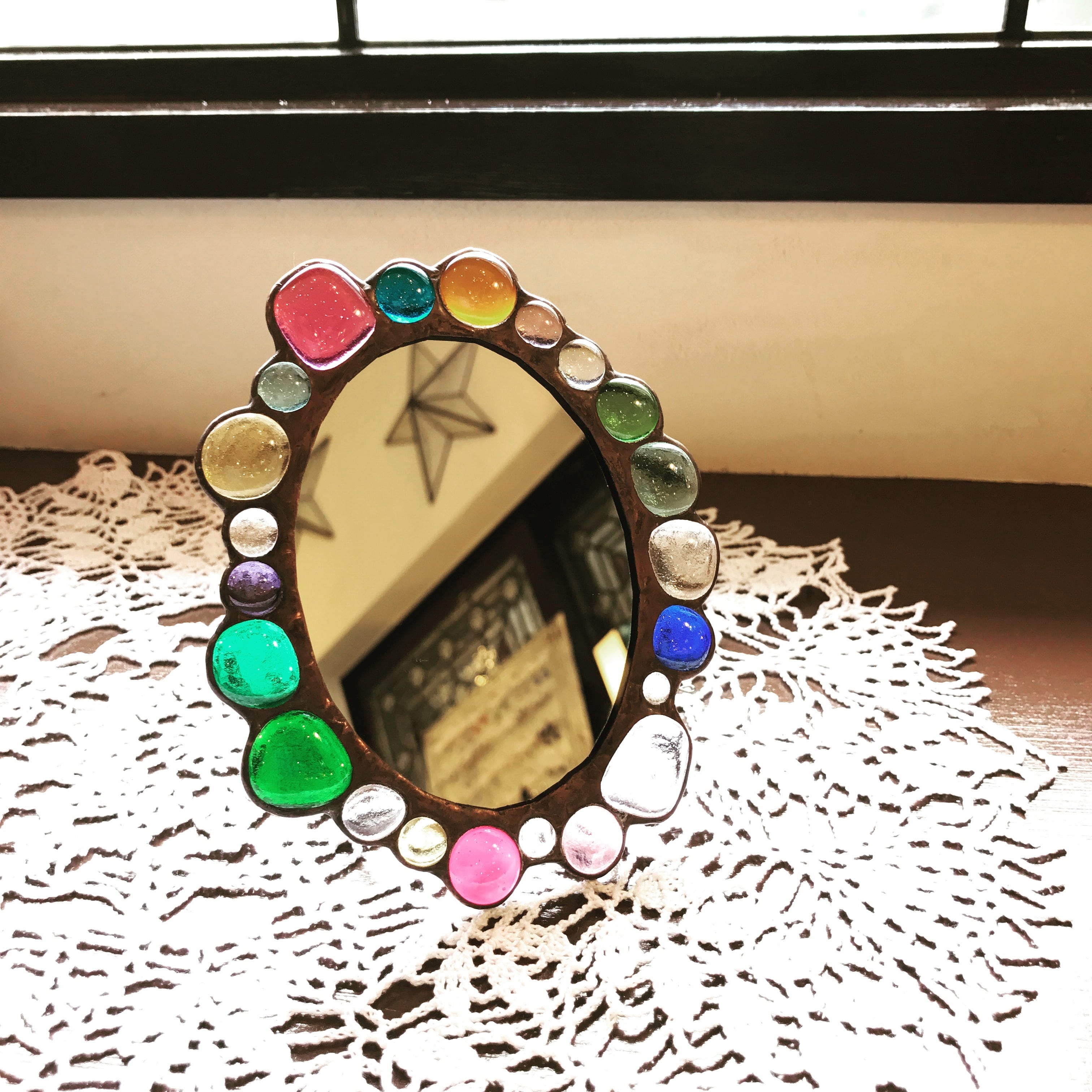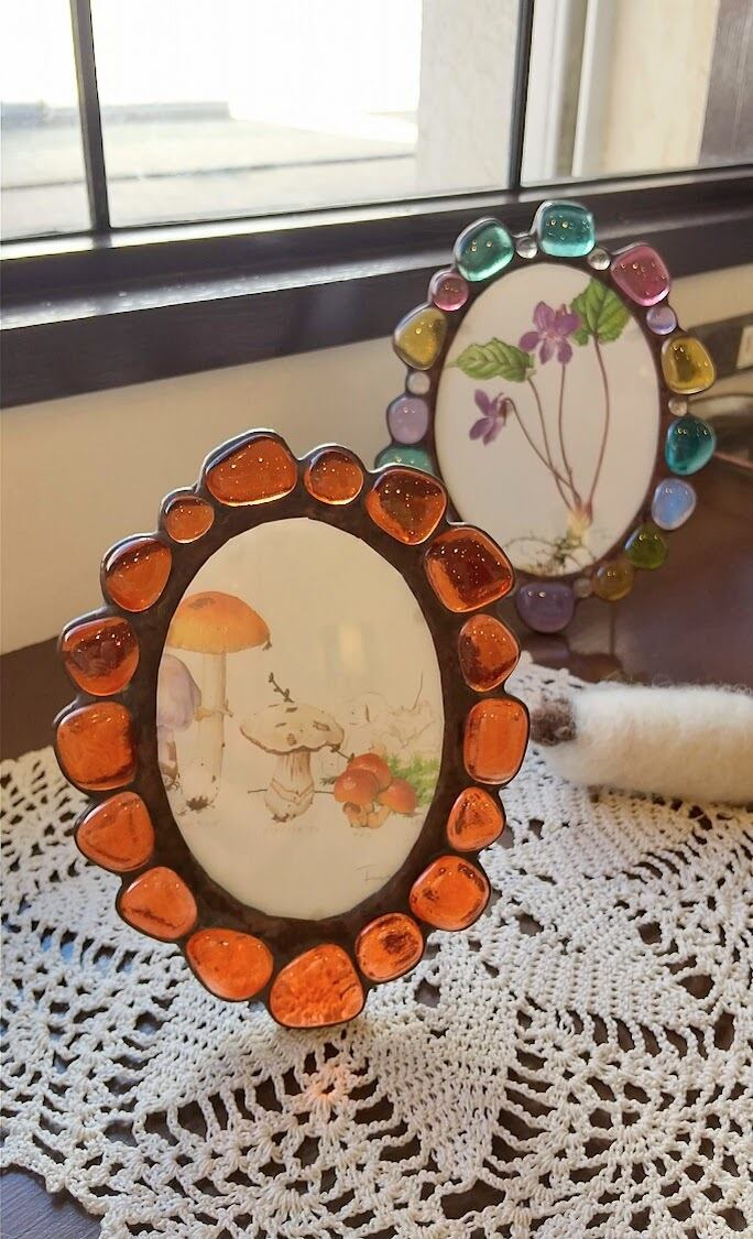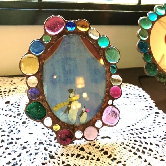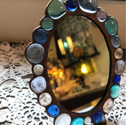 お好きな色の溶かしたジュエルガラスを選んで、オーバル型のフォトフレームorミラーを作りませんか?