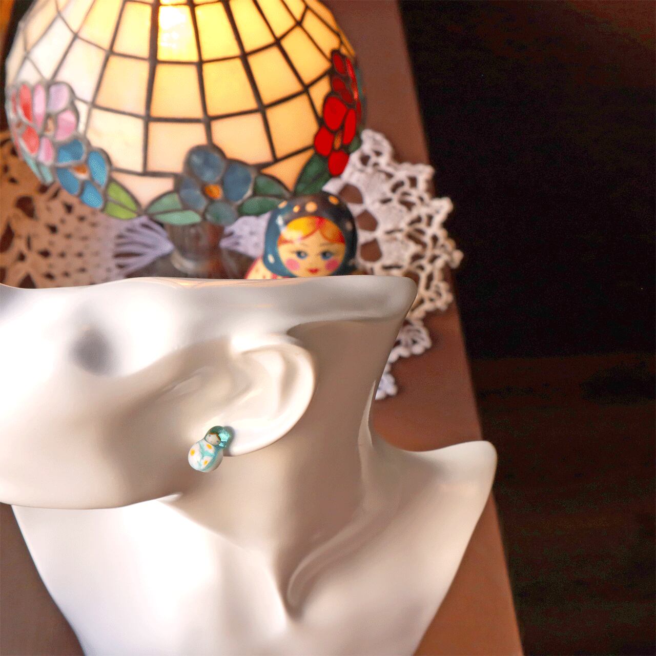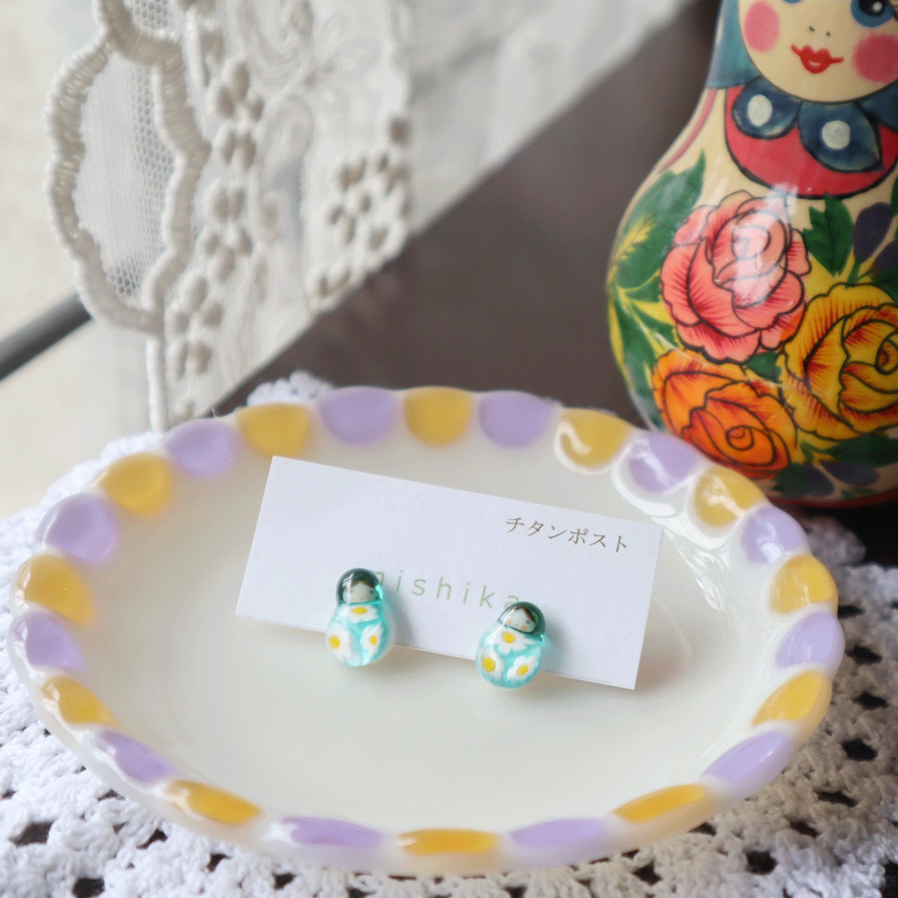 伝統的なマトリョーシカの形を活かしつつ、ガラス特有の透明感と色合いが魅力です。