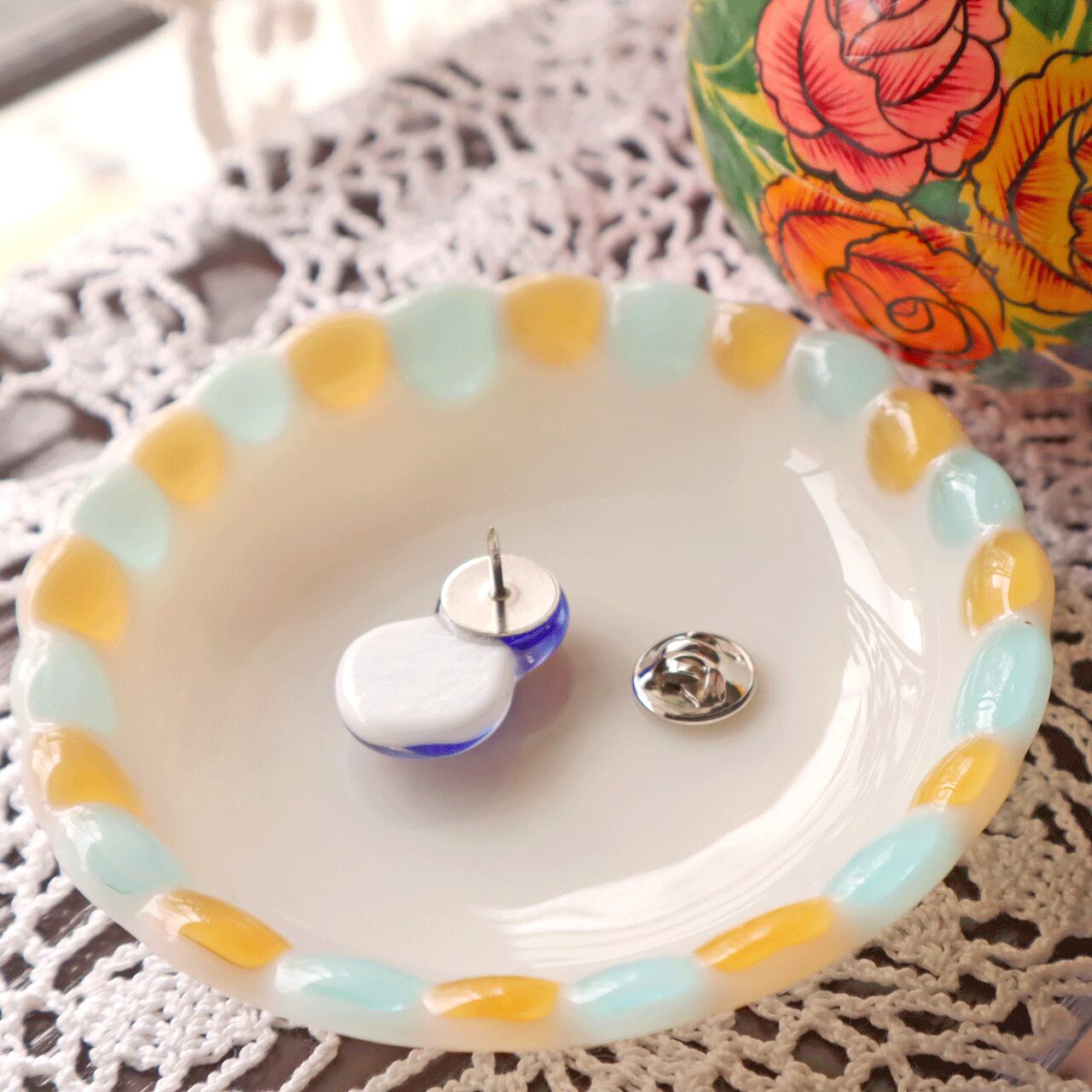 ・ひとつひとつ手で作っており、絵付け、窯入れしているため、歪み・にじみ・裏の焼き跡が付く場合がございます。何卒ご了承下さい。