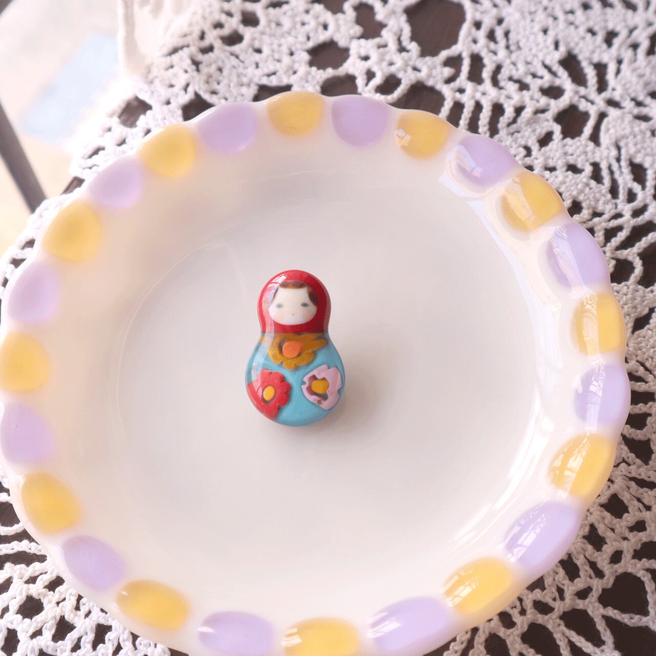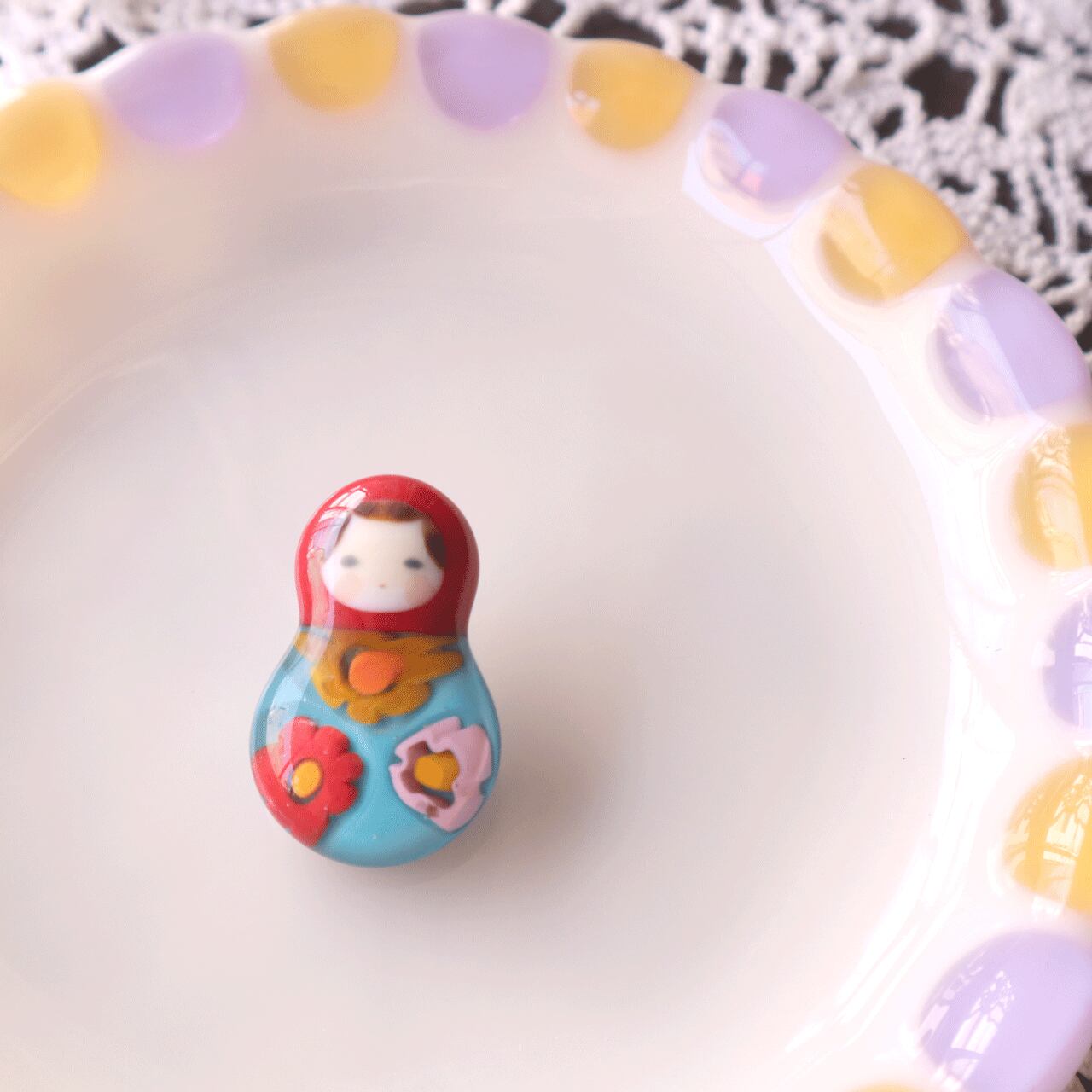 伝統的なマトリョーシカの形を活かしつつ、ガラス特有の透明感と色合いが魅力です。