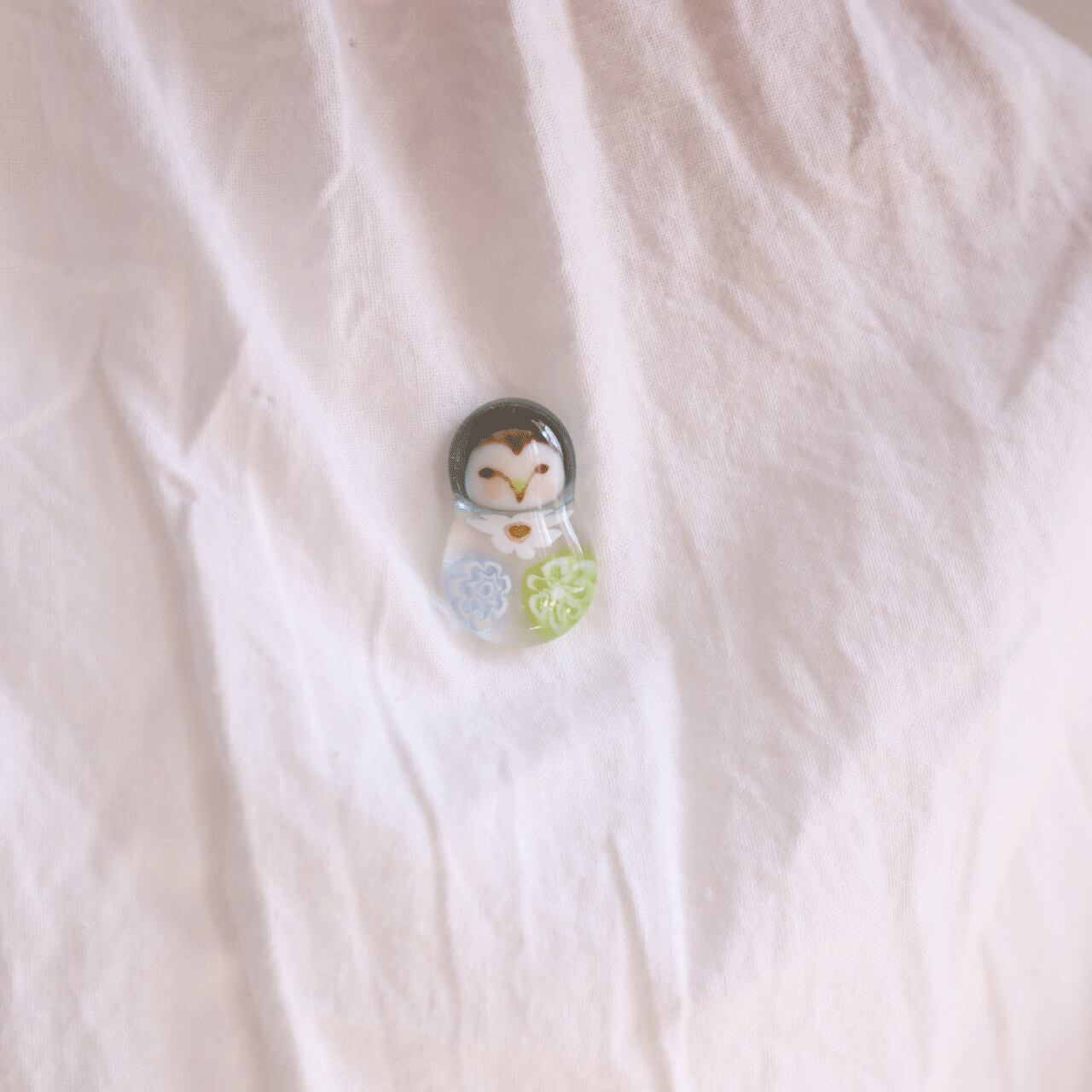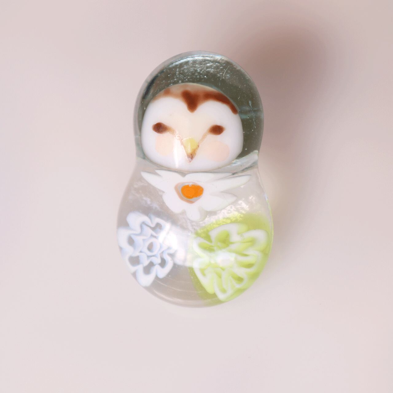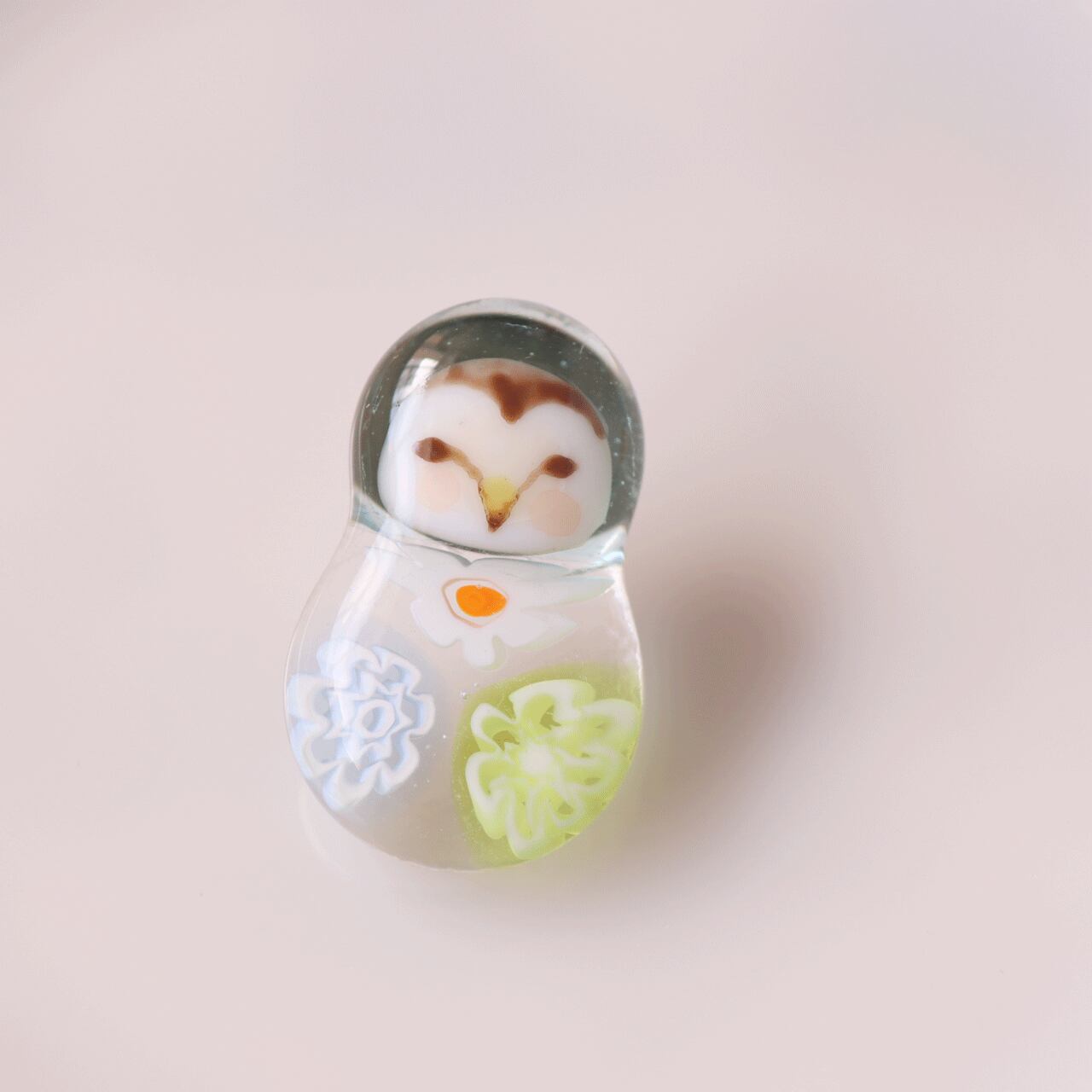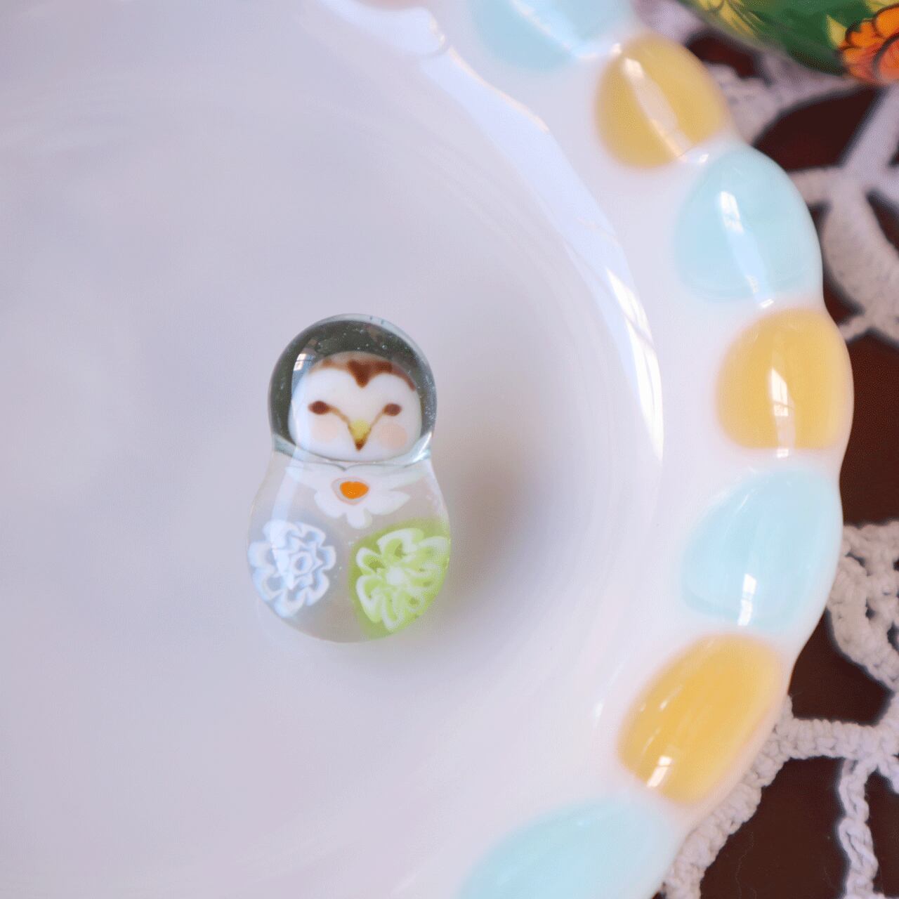 ベネチアングラスを溶かして作り上げたフクリョーシカ。