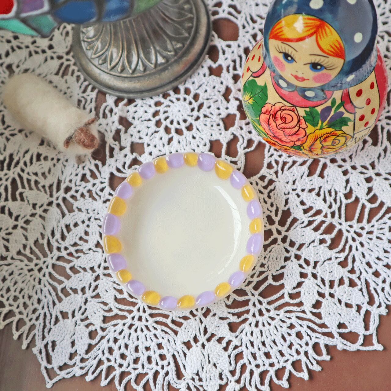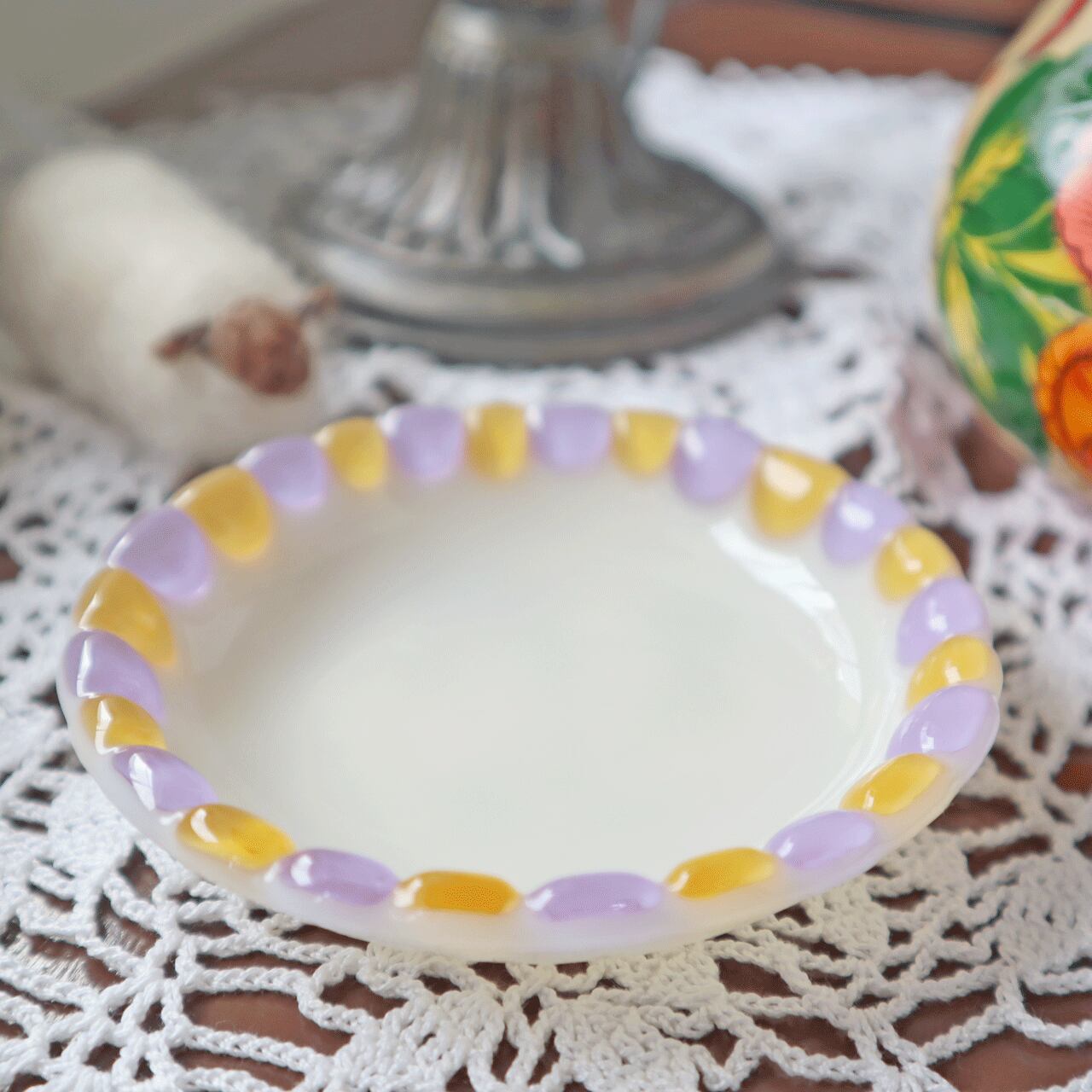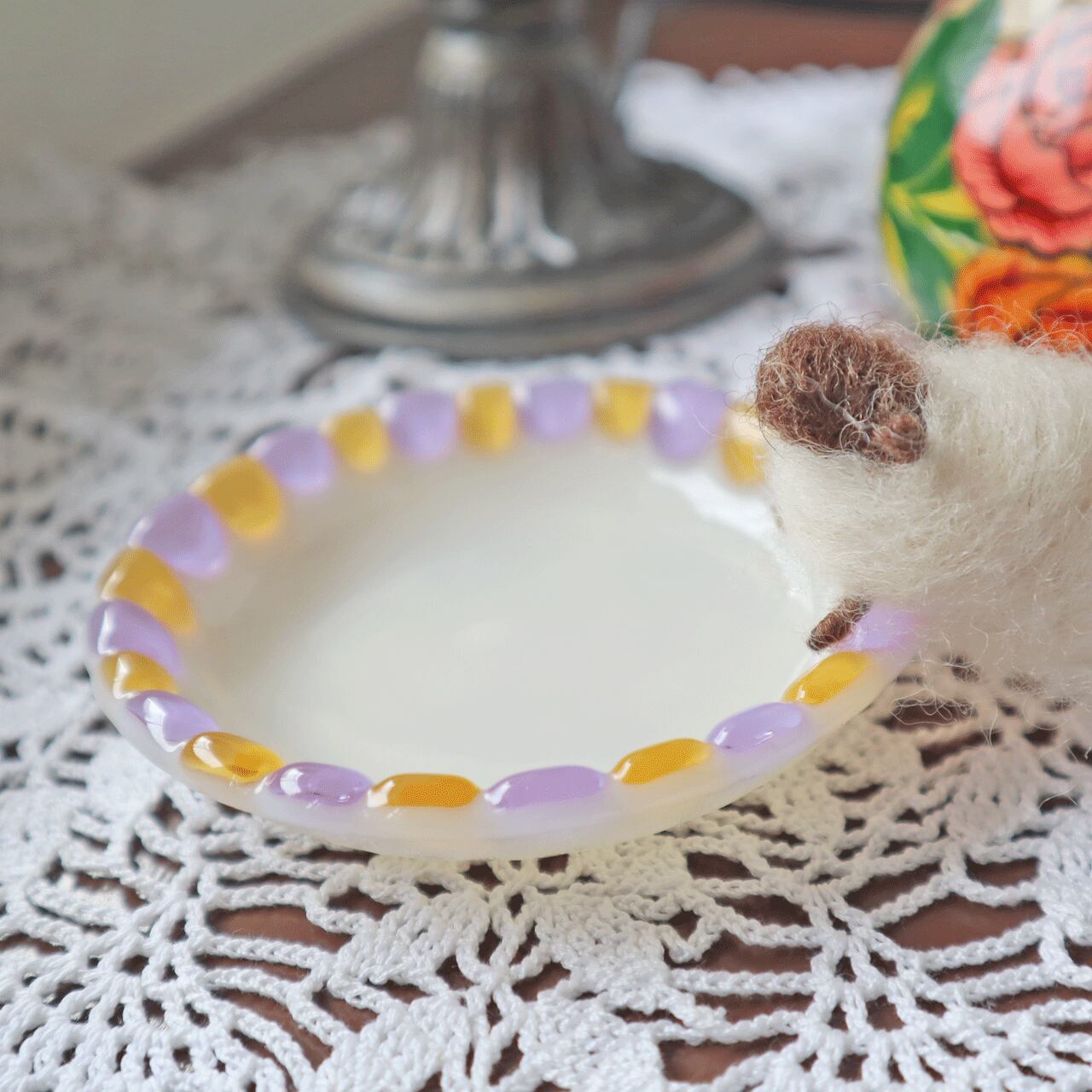 一度一晩窯入れしてガラスを溶かした後、また一晩窯入れしてお皿にしてます。