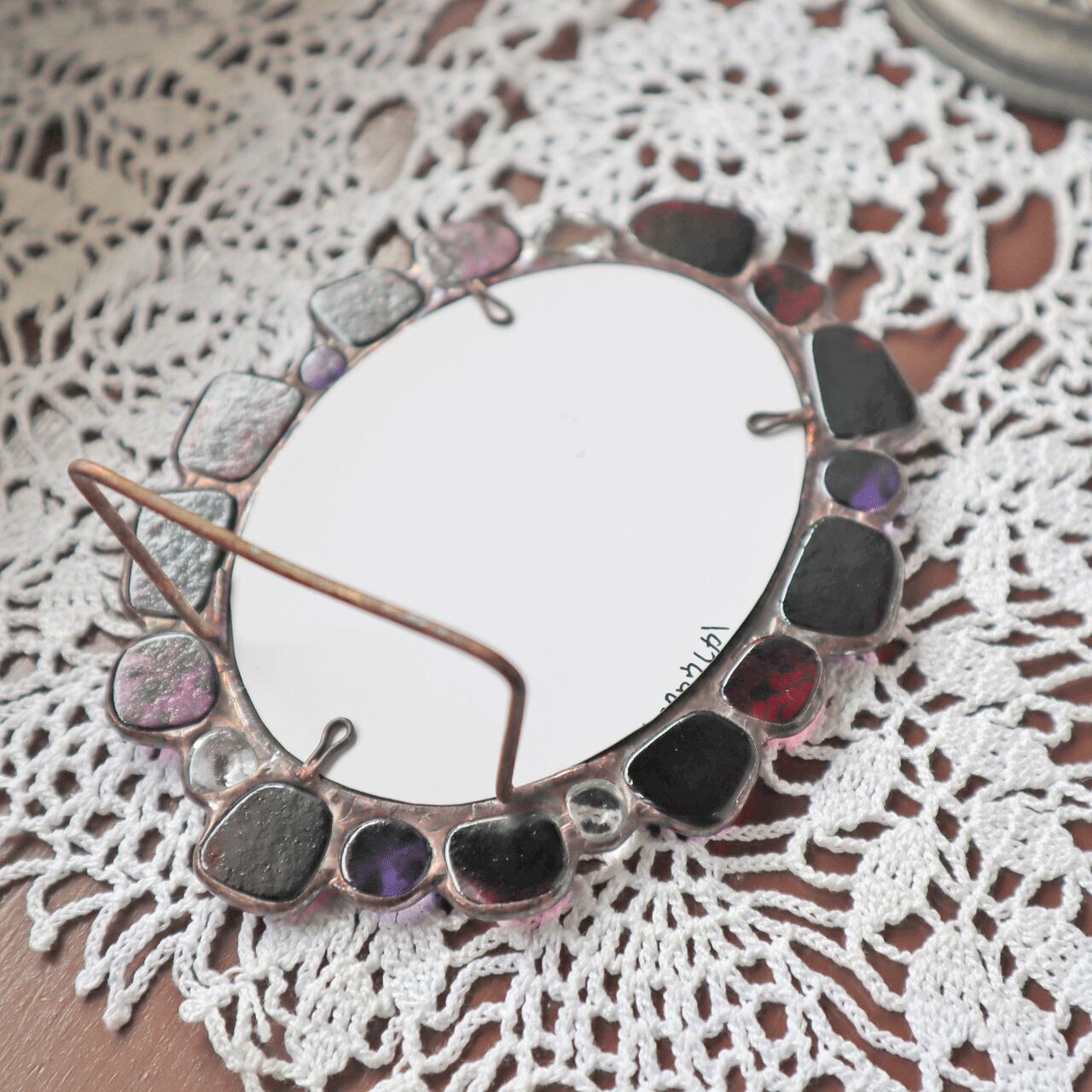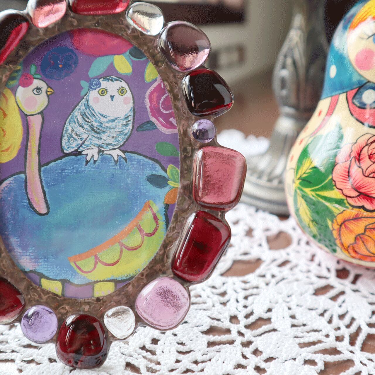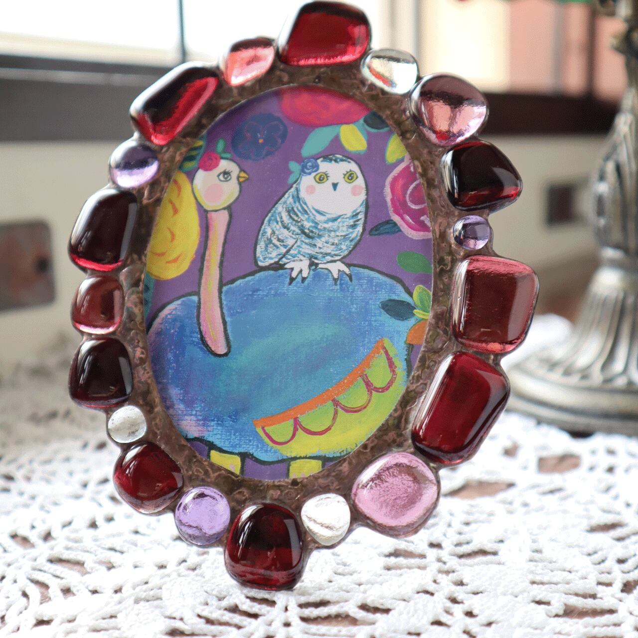 ガラスを溶かしたジュエルで作ったステンドグラスのフォトフレームです。