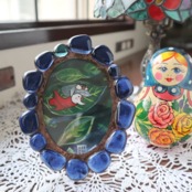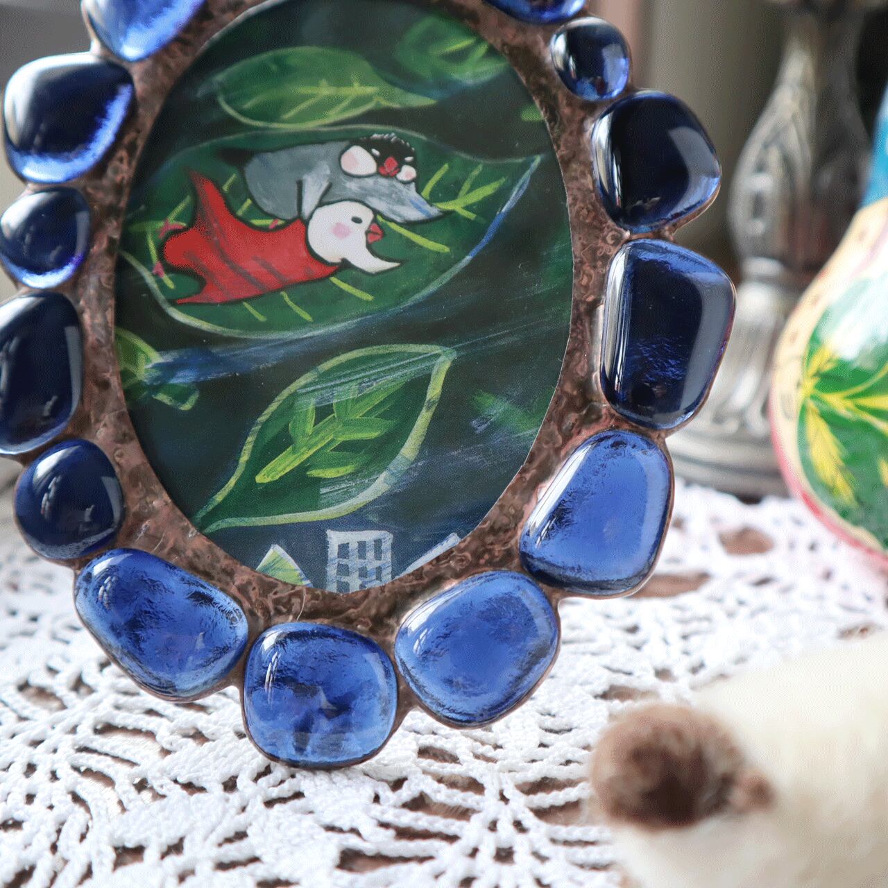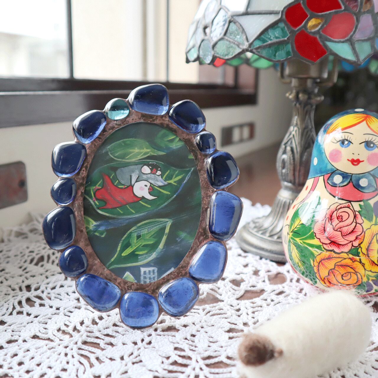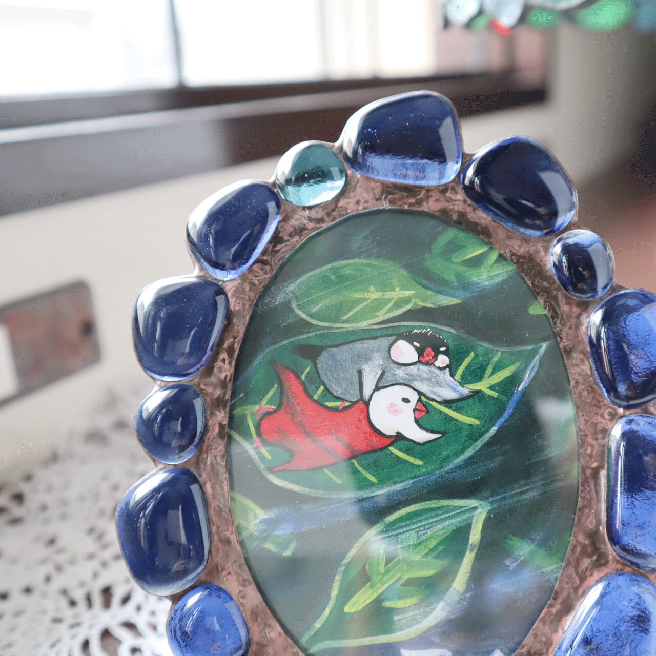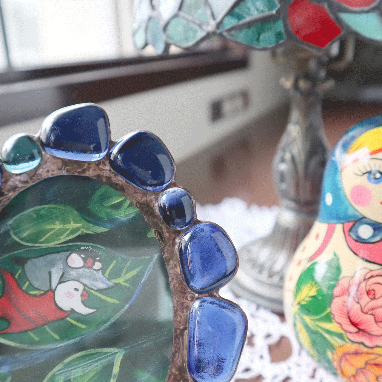 ガラスを溶かしたジュエルで作ったステンドグラスのフォトフレームです。